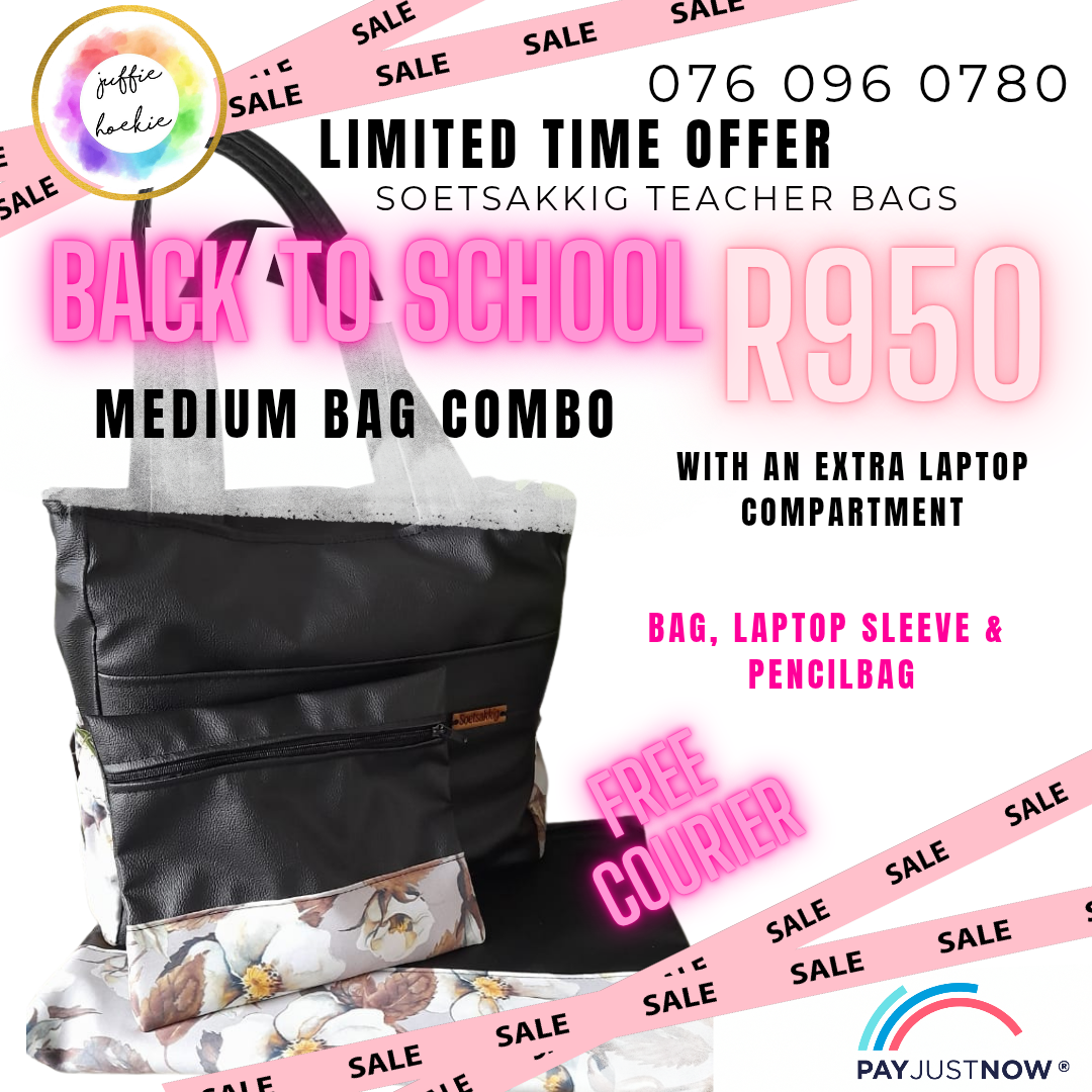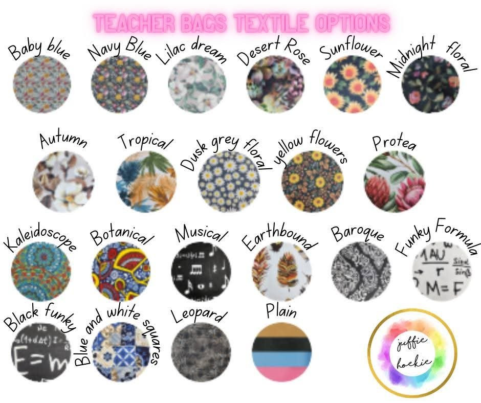 Choose your teacher bag, pencil case and laptops sleeve. this specific combo is the medium teacher bag.